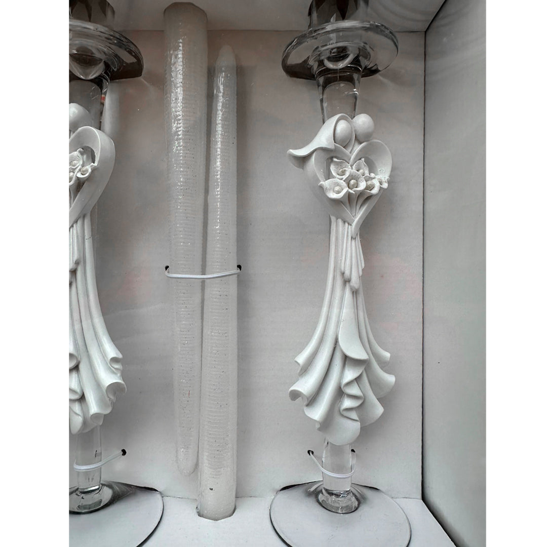 Dieses exklusive 4-teilige Hochzeits-Kerzenhalter-Set verleiht Ihrer Feier eine zeitlos-elegante Note. Das Set besteht aus zwei stilvollen Kerzenhaltern (Höhe 28 cm, Durchmesser 7 cm) und zwei passenden Stabkerzen. Gefertigt aus einer hochwertigen Glas/Gips-Kombination und in einem klassischen Weiss(White) gehalten, ist dieses Set die perfekte Tischdekoration für Ihre Trauung oder Festlichkeiten. Der klassische Stil passt perfekt zu jeder Hochzeitsdekoration. Nur für den Innenbereich geeignet.