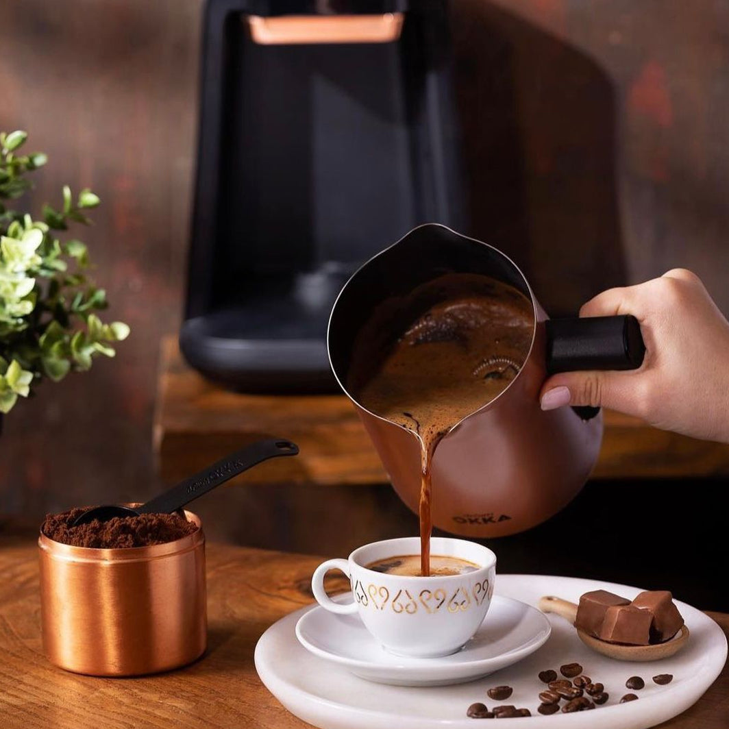 OKKA Rich Spin Pro OK0026 Türkische Kaffeemaschine, Schwarz-Kupfer