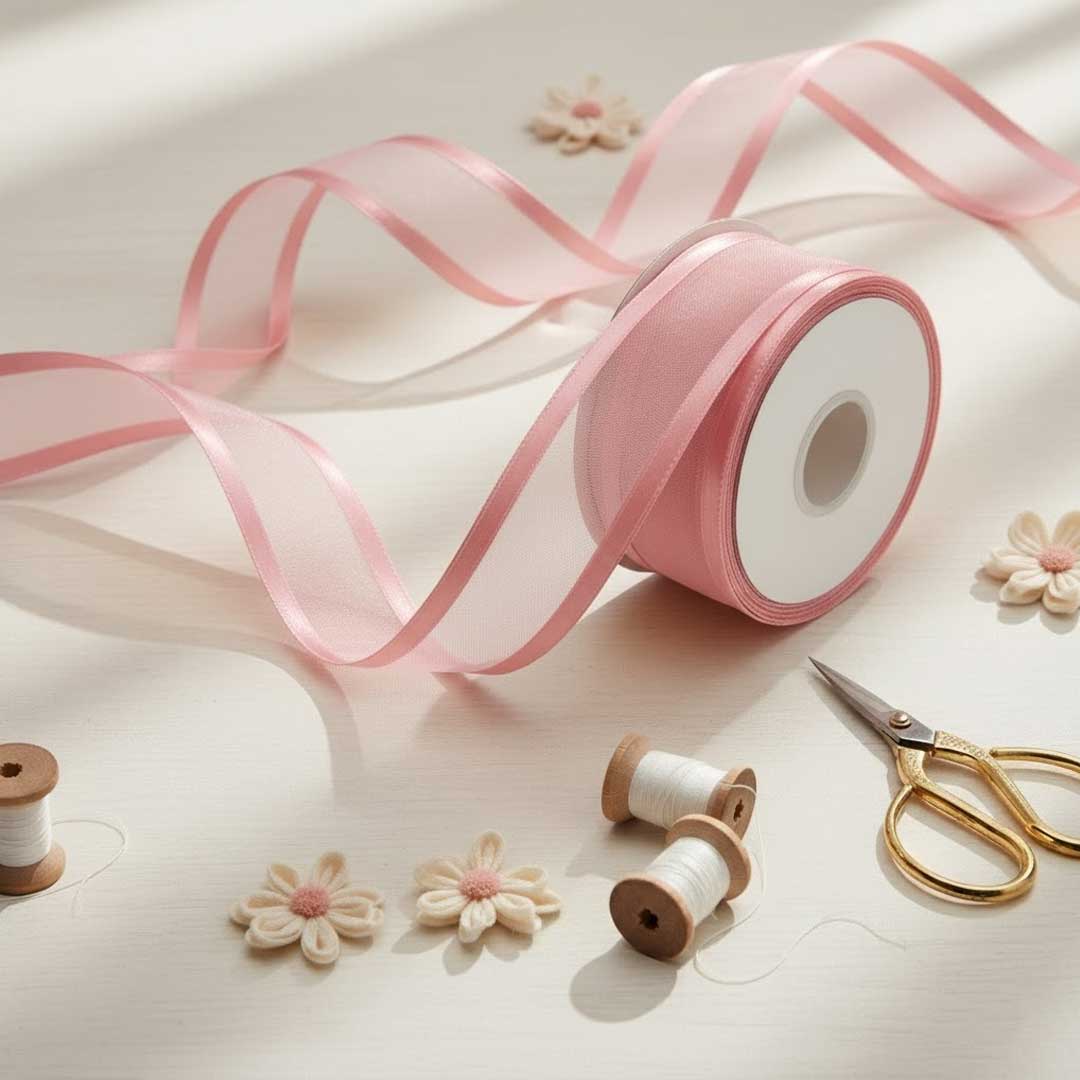Dieses elegante Organza-Satinband in Pastel Pink vereint modernen Glanz und feminine Eleganz.