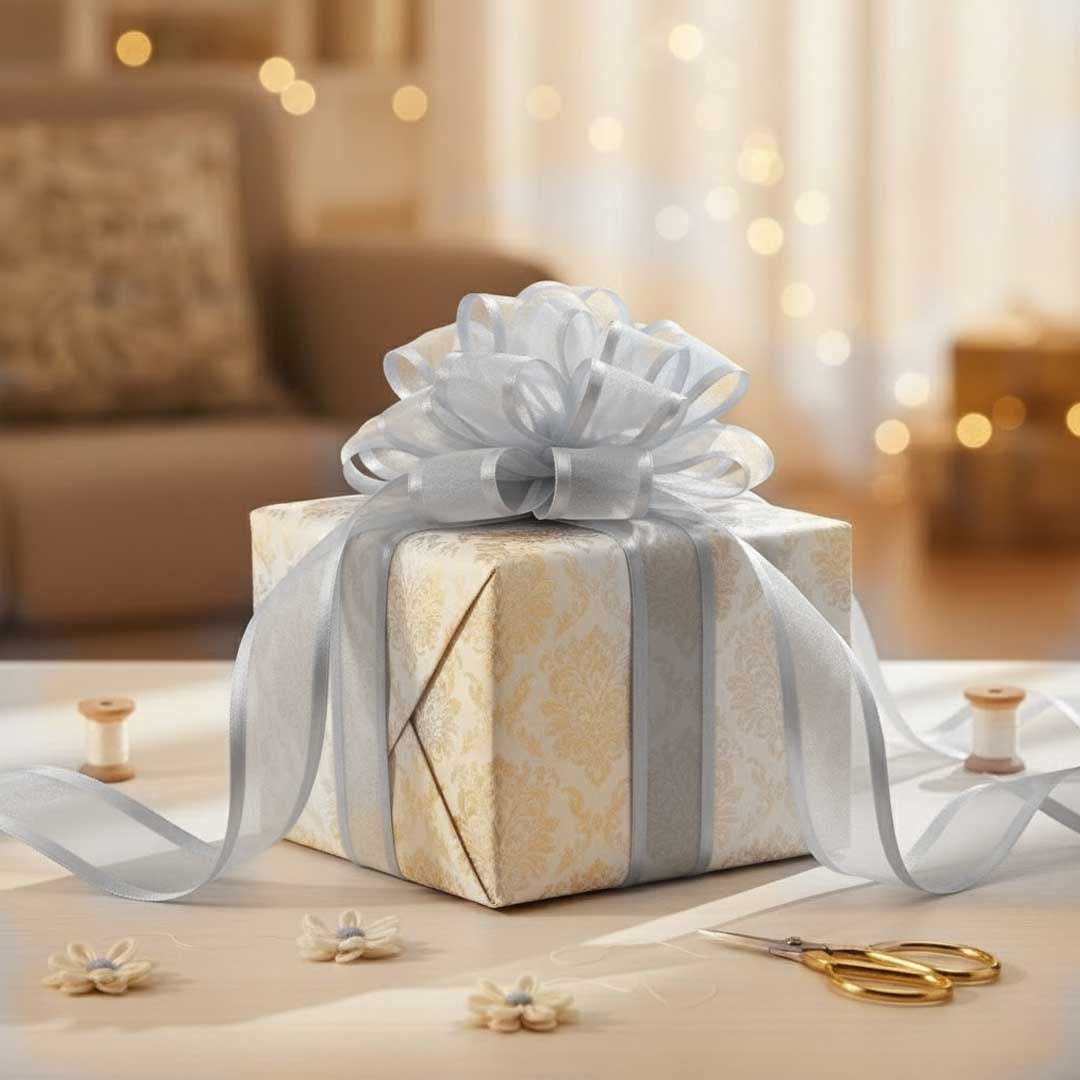 Dieses elegante Organza-Satinband in Silber vereint modernen Glanz und feminine Eleganz.