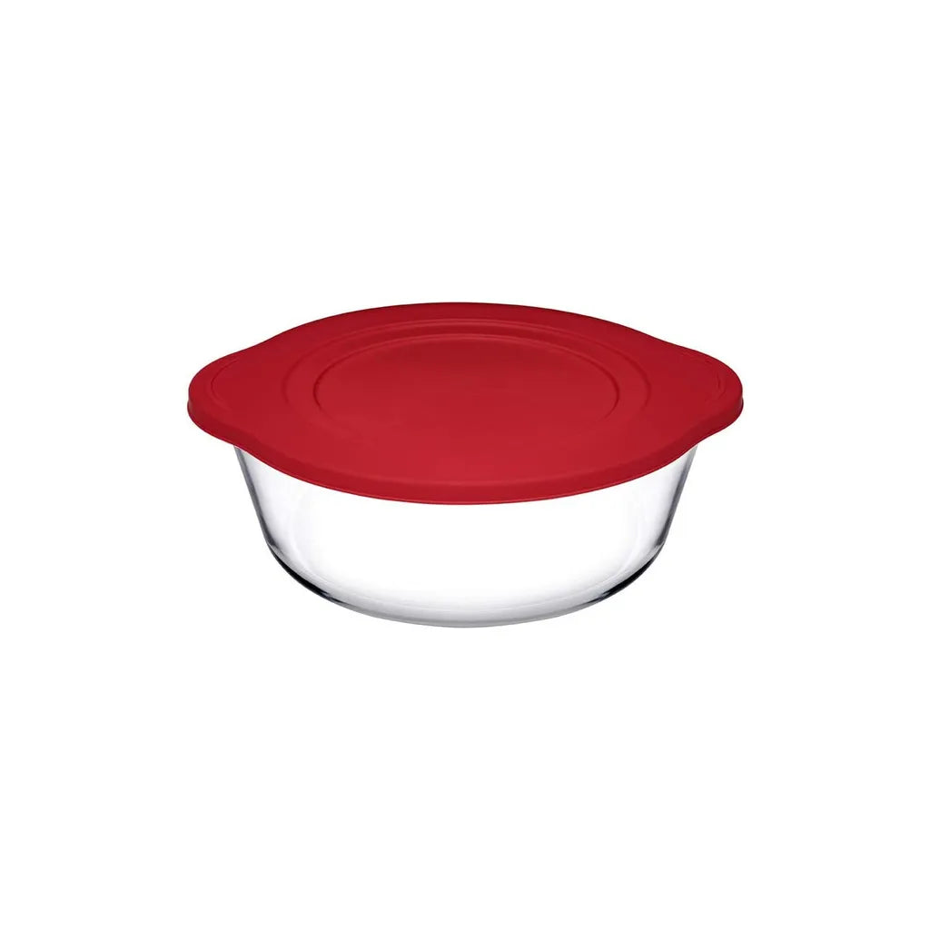 Pasabahce Borcam Rundtopf Kunststoff rot mit Deckel 1450 cc.