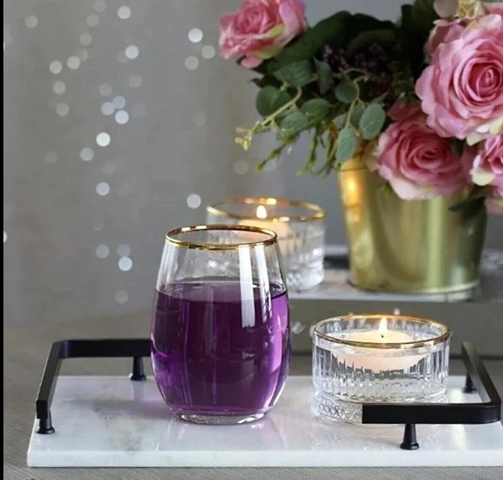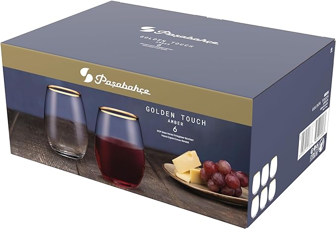 Das Amber Golden Touch Trinkglas-Set besticht durch sein elegantes Design mit auffälligem Goldrand. Jedes Glas fasst 570 ml und hat einen Durchmesser von 6 cm sowie eine Höhe von ca. 11 cm. Gefertigt aus gehärtetem Glas, sind die Gläser besonders widerstandsfähig und somit auch für den Gastronomiebereich geeignet. Handwäsche wird empfohlen, um die Langlebigkeit des Goldrands zu gewährleisten. Ideal für Cocktails und andere Getränke, verleiht dieses Set jeder Feier einen Hauch von Eleganz.