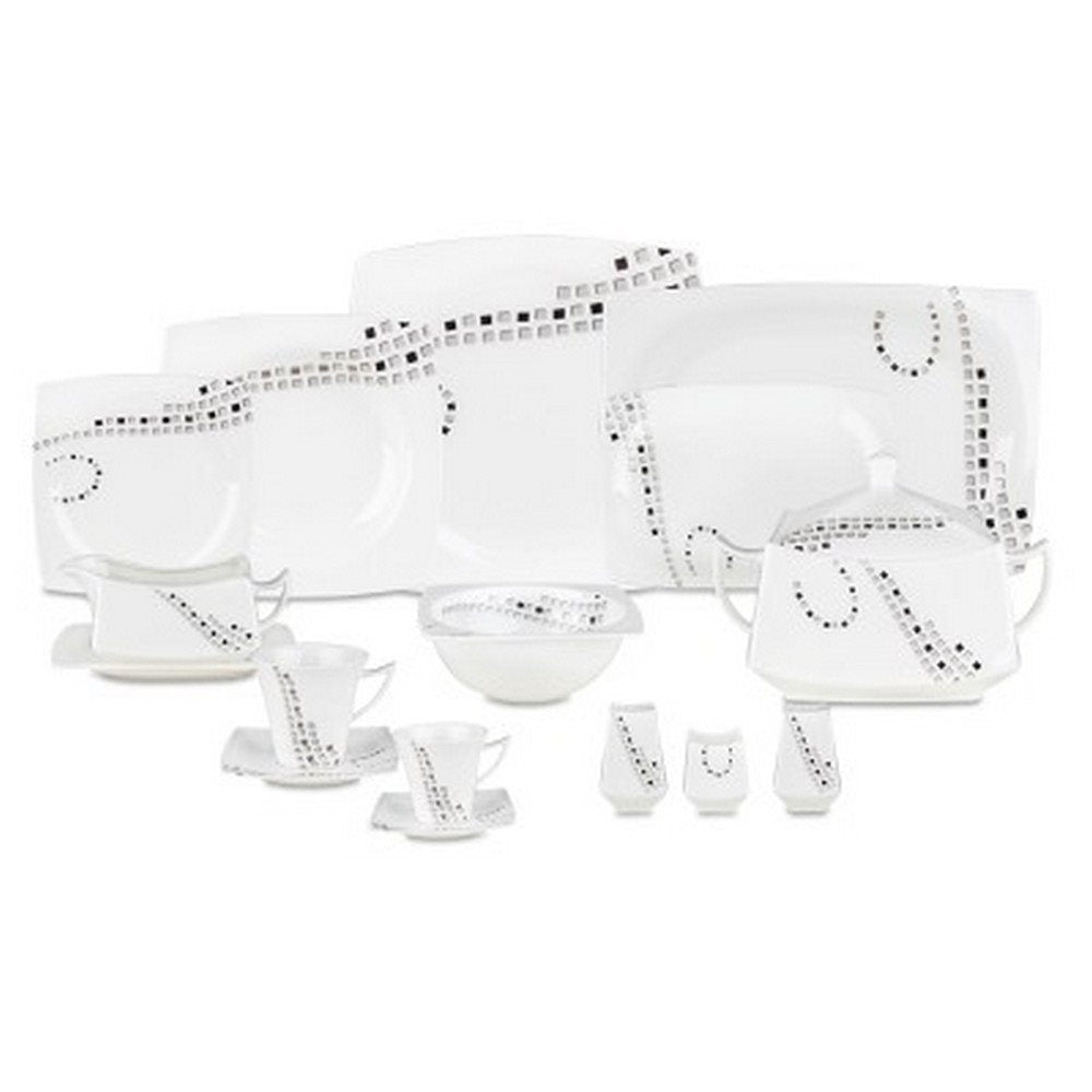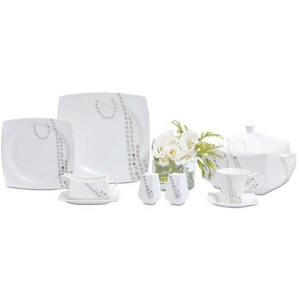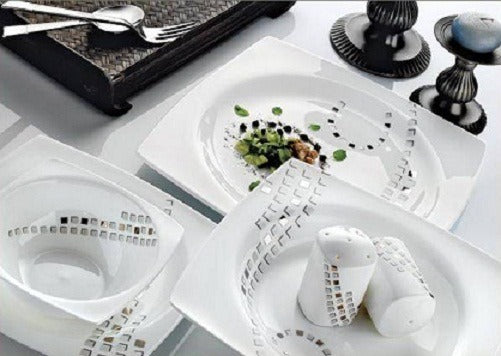 Dieses Dinner-Set besteht aus feinem Knochenporzellan und ist somit besonders robust und langlebig. Obwohl es in der Spülmaschine gereinigt werden kann, wird Handwäsche empfohlen, um die Qualität des Porzellans optimal zu erhalten. Es ist auch backofentauglich und kann im Kühlschrank oder Gefrierschrank aufbewahrt werden.