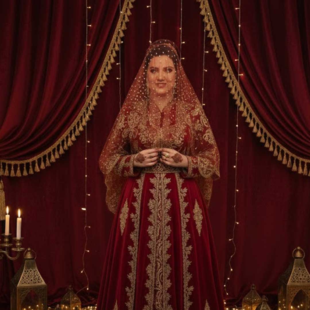 Ein Schleier, der durch seinen Glitzerdruck Tradition und modernen Stil perfekt verbindet – ideal für einen unvergesslichen Henna-Abend.