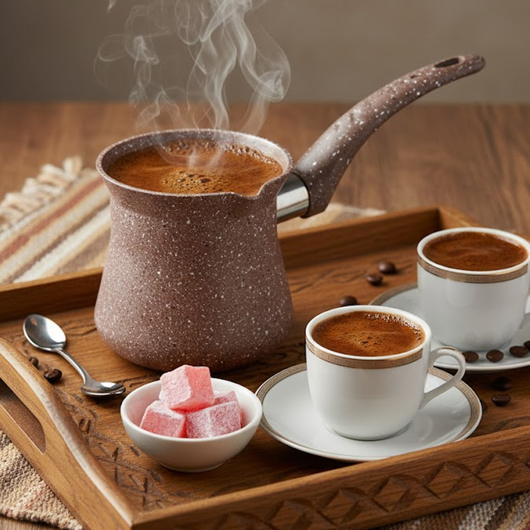Die SAN GRANIT No.4 Kaffeekanne (Cezve) ist der ideale Helfer für aromatischen Mokka oder türkischen Kaffee im Alltag. Dank ihrer robusten Granitbeschichtung ist sie besonders widerstandsfähig gegen Kratzer und Abrieb und bleibt auch bei häufiger Nutzung lange schön. Die PFOA-freie Antihaftbeschichtung sorgt dafür, dass nichts anbrennt und sich die Kanne leicht reinigen lässt.
