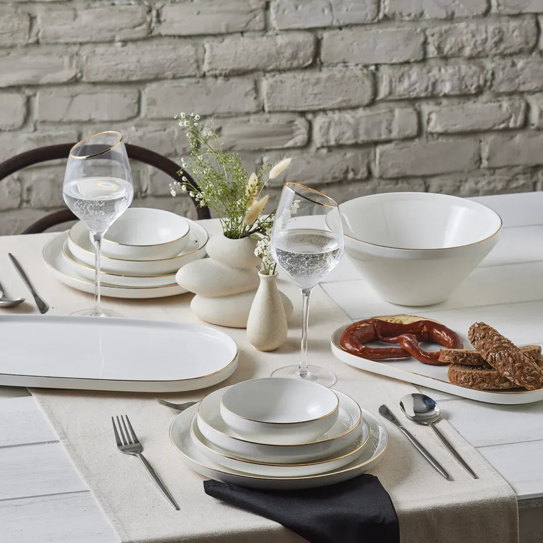 Das Streamline New Saturn Gold Geschirrset verleiht jeder Tafel eine luxuriöse Note. Gefertigt aus hochwertigem New Generation Bone, besticht das 19-teilige Set für 4 Personen durch sein elegantes Design mit goldenen Akzenten. Die feine Verarbeitung sorgt für Langlebigkeit, während das moderne Design zeitlose Eleganz ausstrahlt. Perfekt für besondere Anlässe oder den stilvollen Alltag.