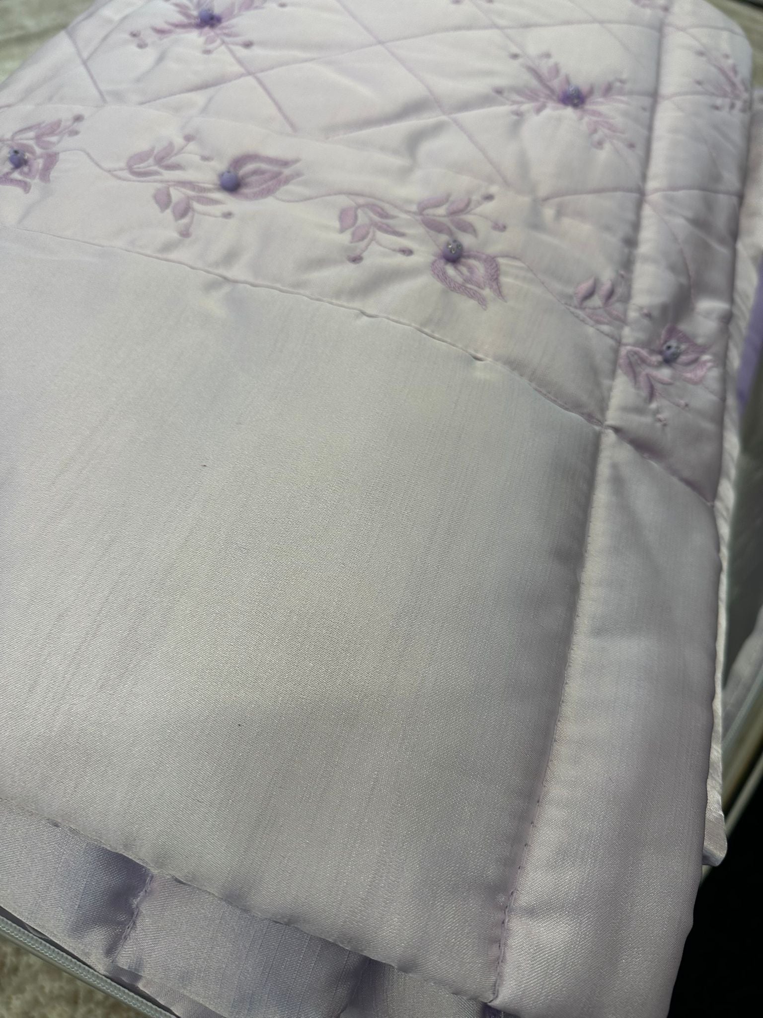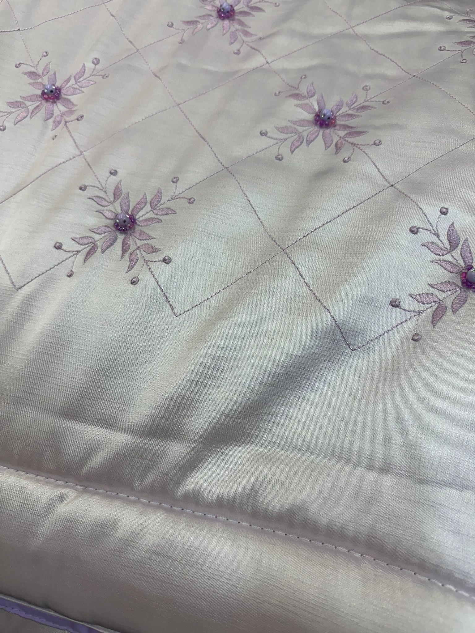 Verleihen Sie Ihrem Schlafzimmer einen Hauch von Luxus mit der Diva Tagesdecke in edlen Lilatönen! Mit ihren eleganten, handgefertigten Stickereien und dem hochwertigen Jacquardstoff wird sie zum stilvollen Mittelpunkt Ihres Schlafbereichs. Diese Tagesdecke schützt Ihr Bett vor Staub und äußeren Einflüssen und sorgt gleichzeitig für ein ordentliches und harmonisches Ambiente.