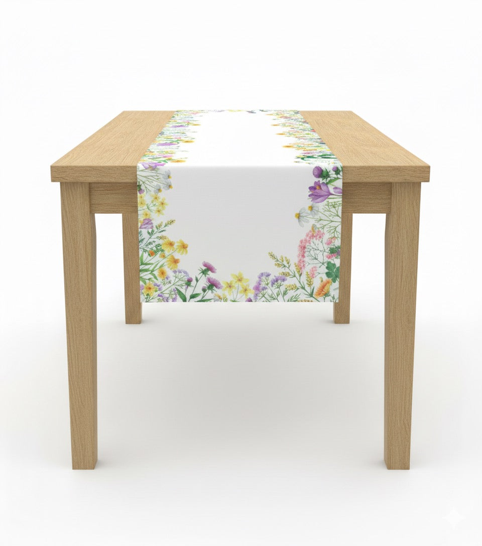 Seine florale Gestaltung macht ihn perfekt für Frühlings- und Sommerdekorationen oder romantische Tafelformen. Ob Esstisch, Serviertisch oder Beistelltisch – dieser Läufer bringt eine freundliche, einladende Atmosphäre in Ihren Wohnbereich.