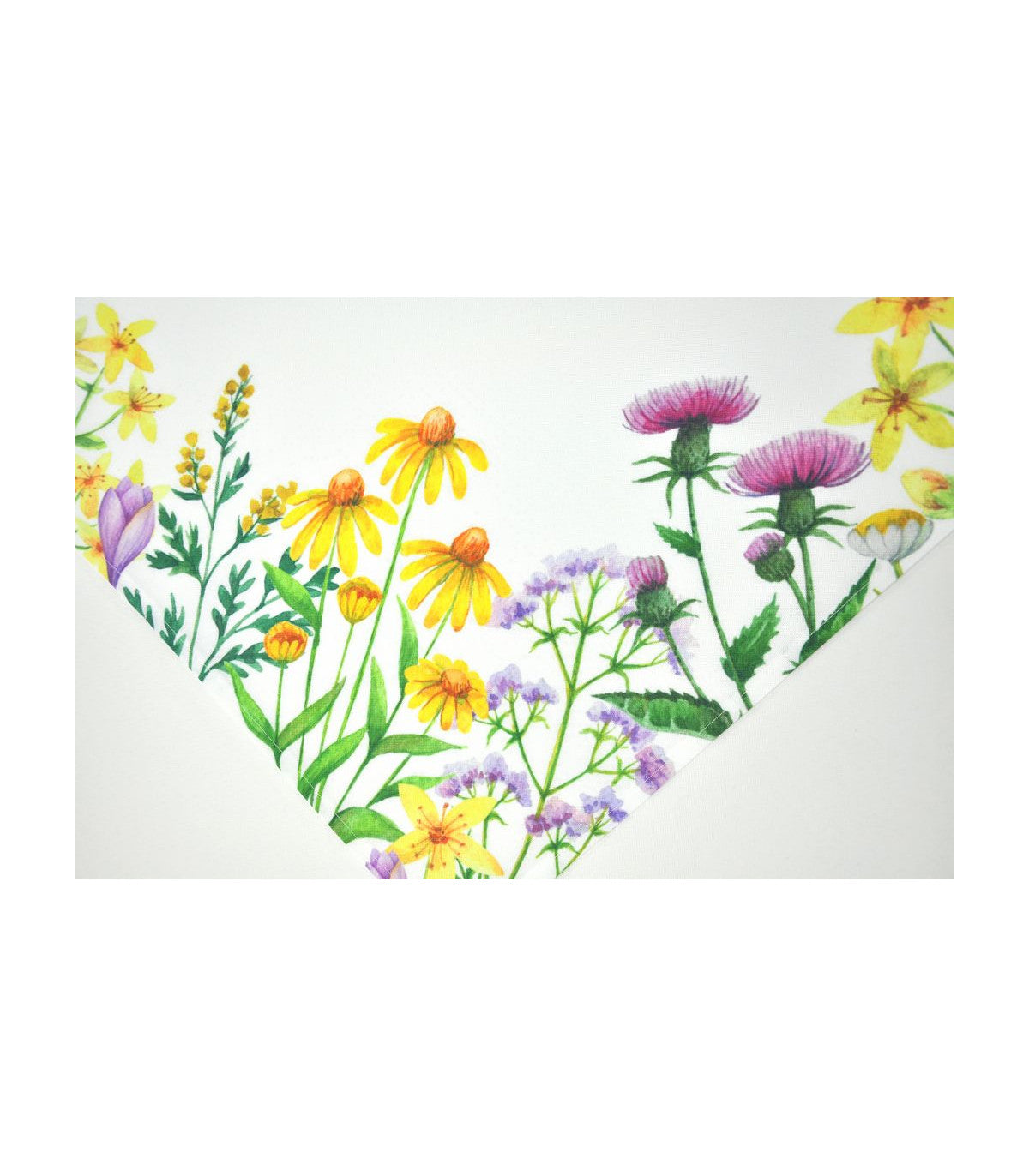 Der Tischläufer „Blumen“ im Format 40 × 110 cm setzt mit floralen Motiven und zarten Farbtönen stilvolle Akzente auf Ihrem Tisch. Gefertigt aus hochwertiger Polyester-Leinen-Optik, vereint er die natürliche Textur von Leinen mit der Pflegeleichtigkeit von Polyester – ideal für Alltag und besondere Gelegenheiten.