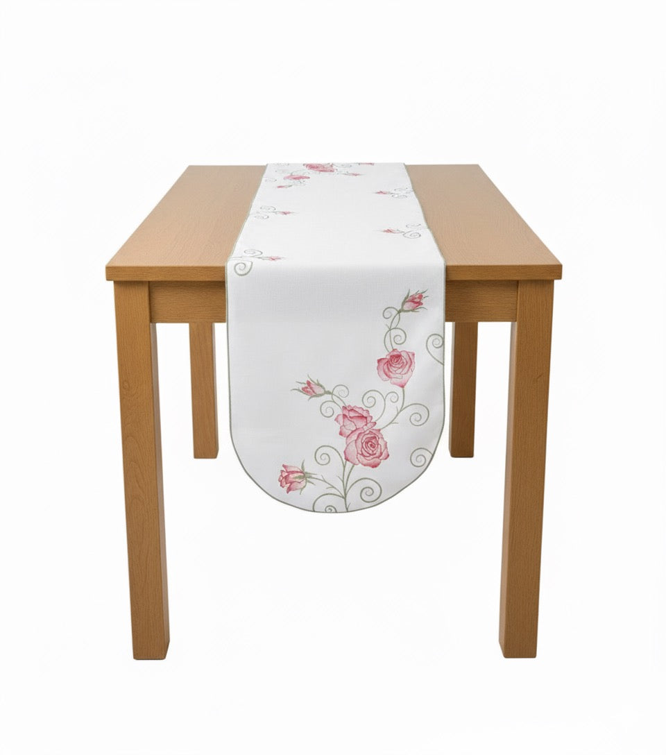 Verleihen Sie Ihrem Tisch eine sanfte und zugleich stilvolle Note mit diesem ovalen Tischläufer in zartem Rosé. Mit den Maßen 40 × 160 cm passt er ideal auf rechteckige oder ovale Tische und setzt einen subtilen Farbakzent.