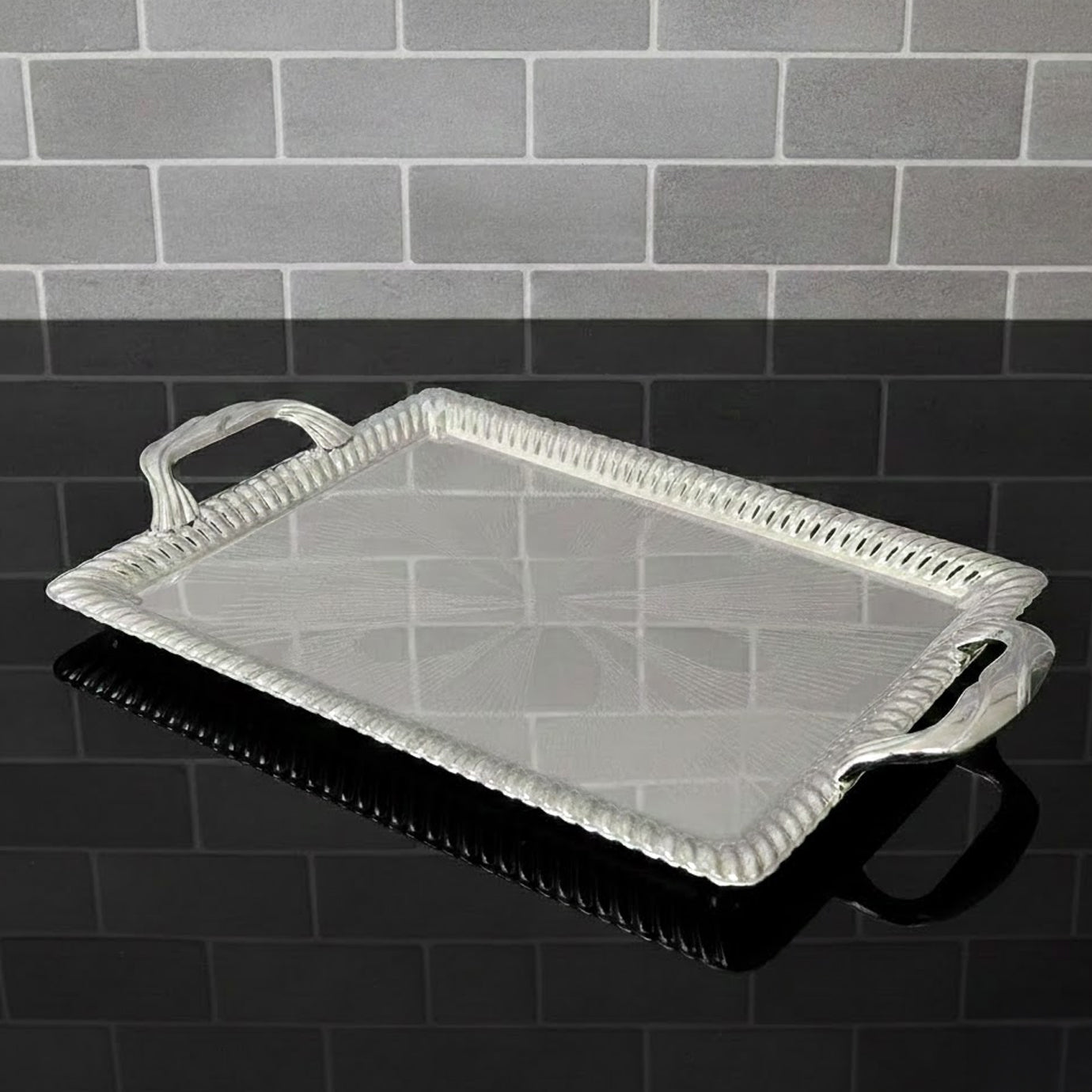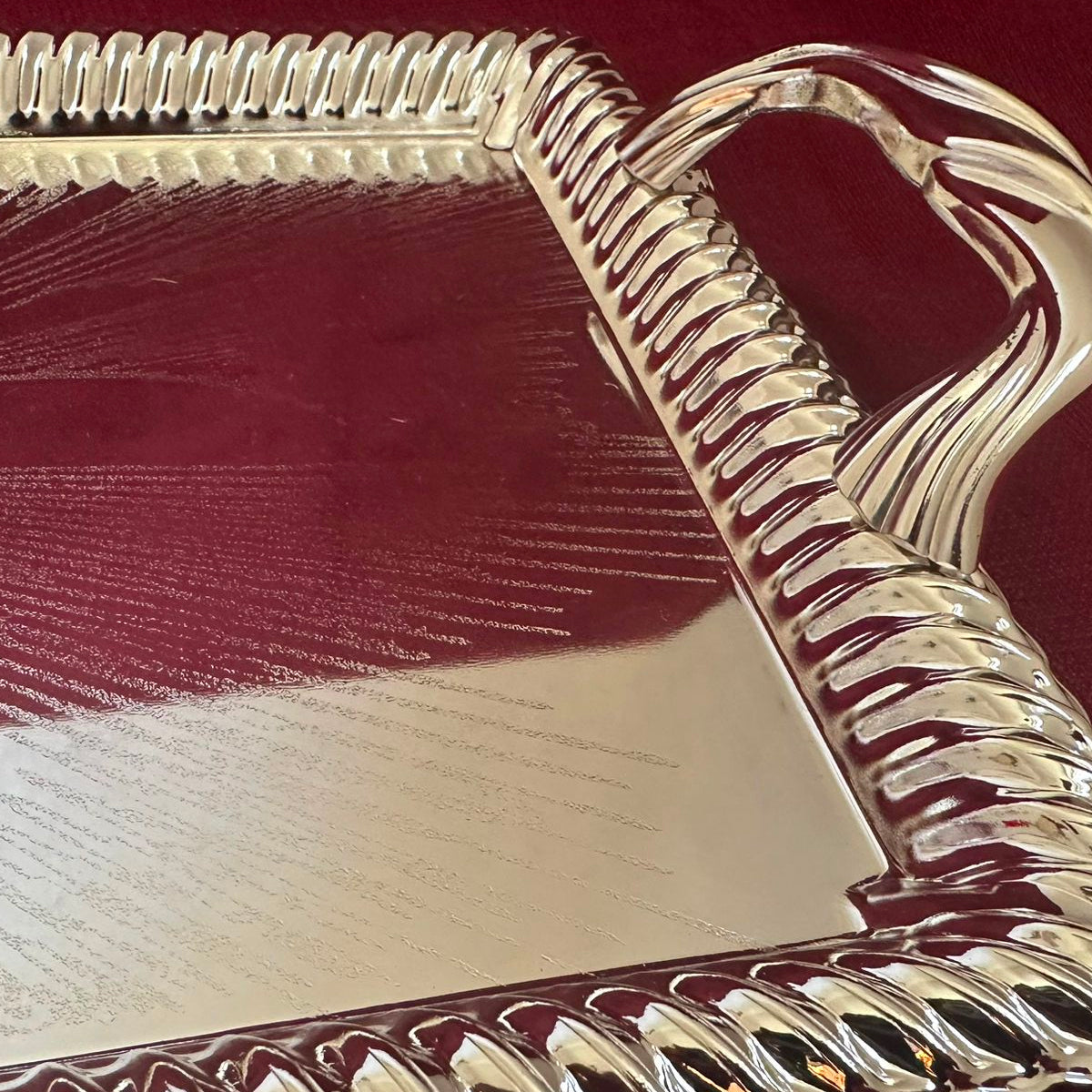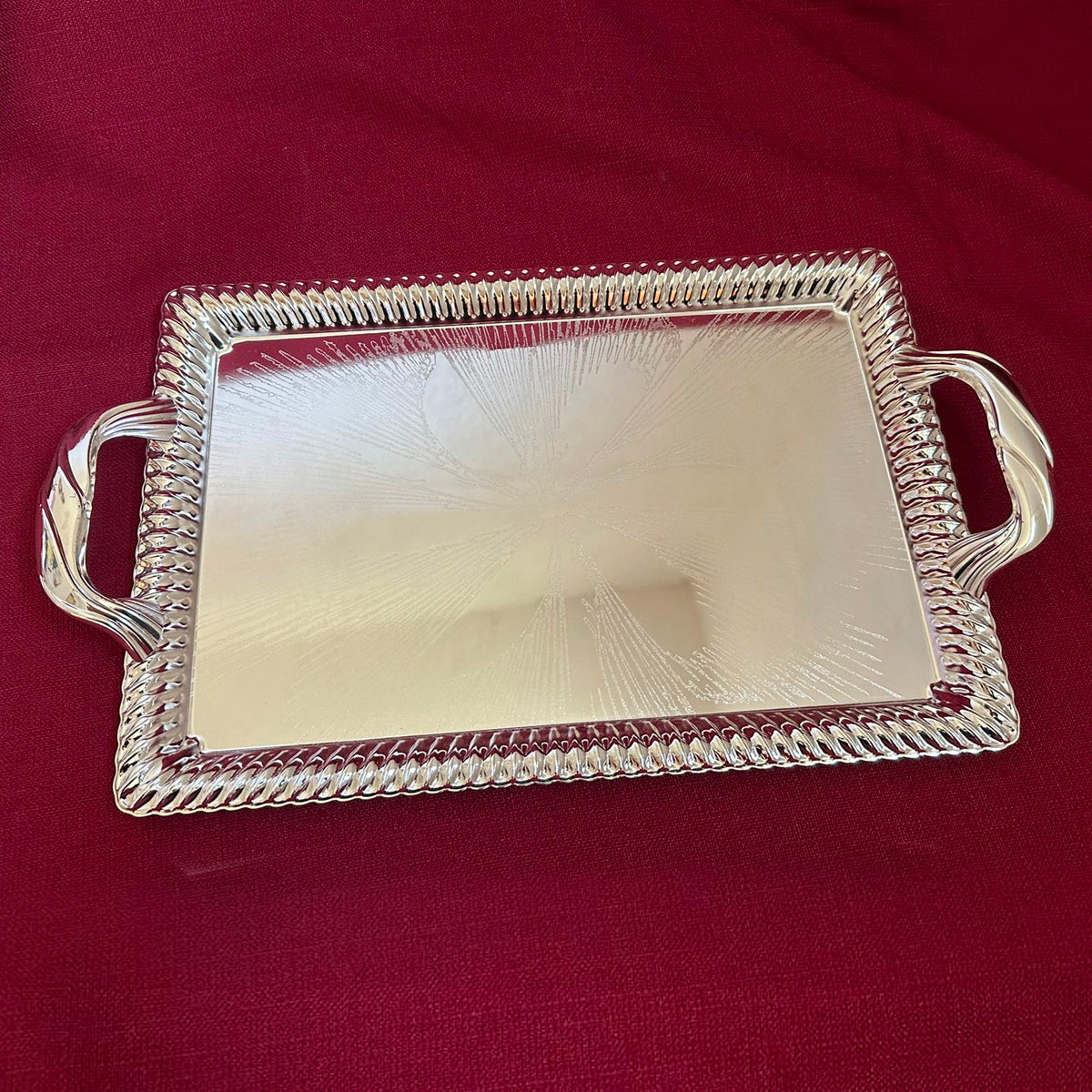 Versilbertes Meisterstück: Mittelgroßes rechteckiges Tablett mit edlem Glanz