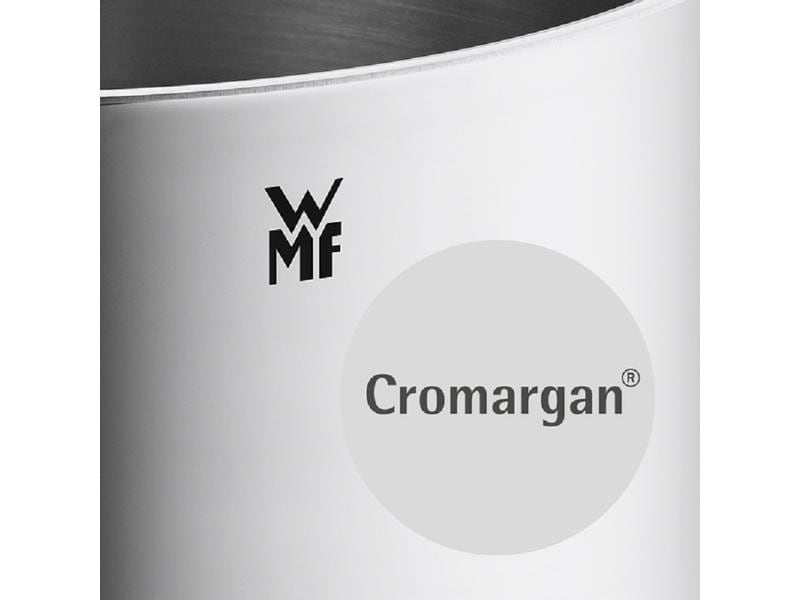 Seit der Unternehmensgründung 1853 produziert die ehemalige Württembergische Metallwarenfabrik (heute WMF Group GmbH) hochwertige Küchenhelfer und Haushaltswaren für Privathaushalte, Gastronomie und Hotellerie. Die bekannteste Errungenschaft von WMF ist der Edelstahl Cromargan mit 18% Chrom und 10% Nickel, der seinen Namen dem hohen Chromanteil und dem silberähnlichen Aussehen verdankt. Chrom macht das Metall rostfrei, während Nickel ihm Säureresistenz und Glanz verleiht. Sowohl hervorragendem Design als auch zuverlässiger Funktionalität wird bei allen Entwicklungen, ob Geschirr, Besteck, Pfannen oder anderen Utensilien, ein wichtiger Platz eingeräumt. Denn nicht nur das Essen und das Trinken gehören für WMF zu den unvergleichlichen Genussmomenten des Lebens, sondern genauso oder sogar noch mehr das Vorbereiten und das Kochen.